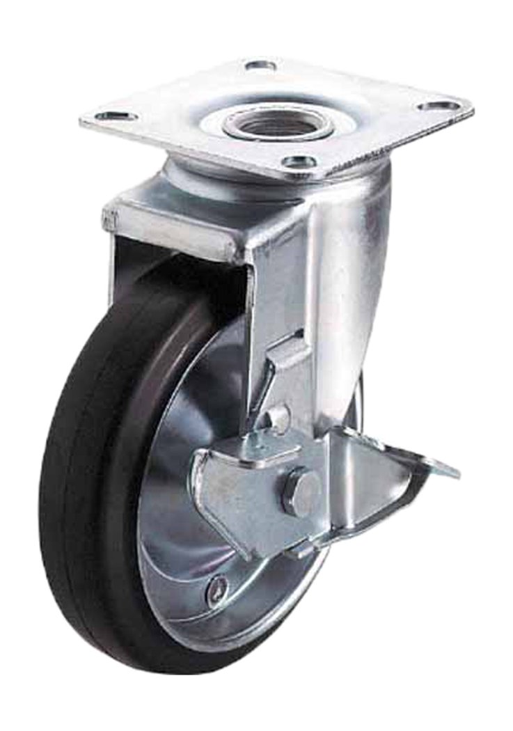 ユーエイキャスター:J2シリーズ J2-S型 自在キャスター ストッパー付 ゴム(鋼板ホイル,B入)車 車輪径φ130 メーカー型式:WJ2-130S