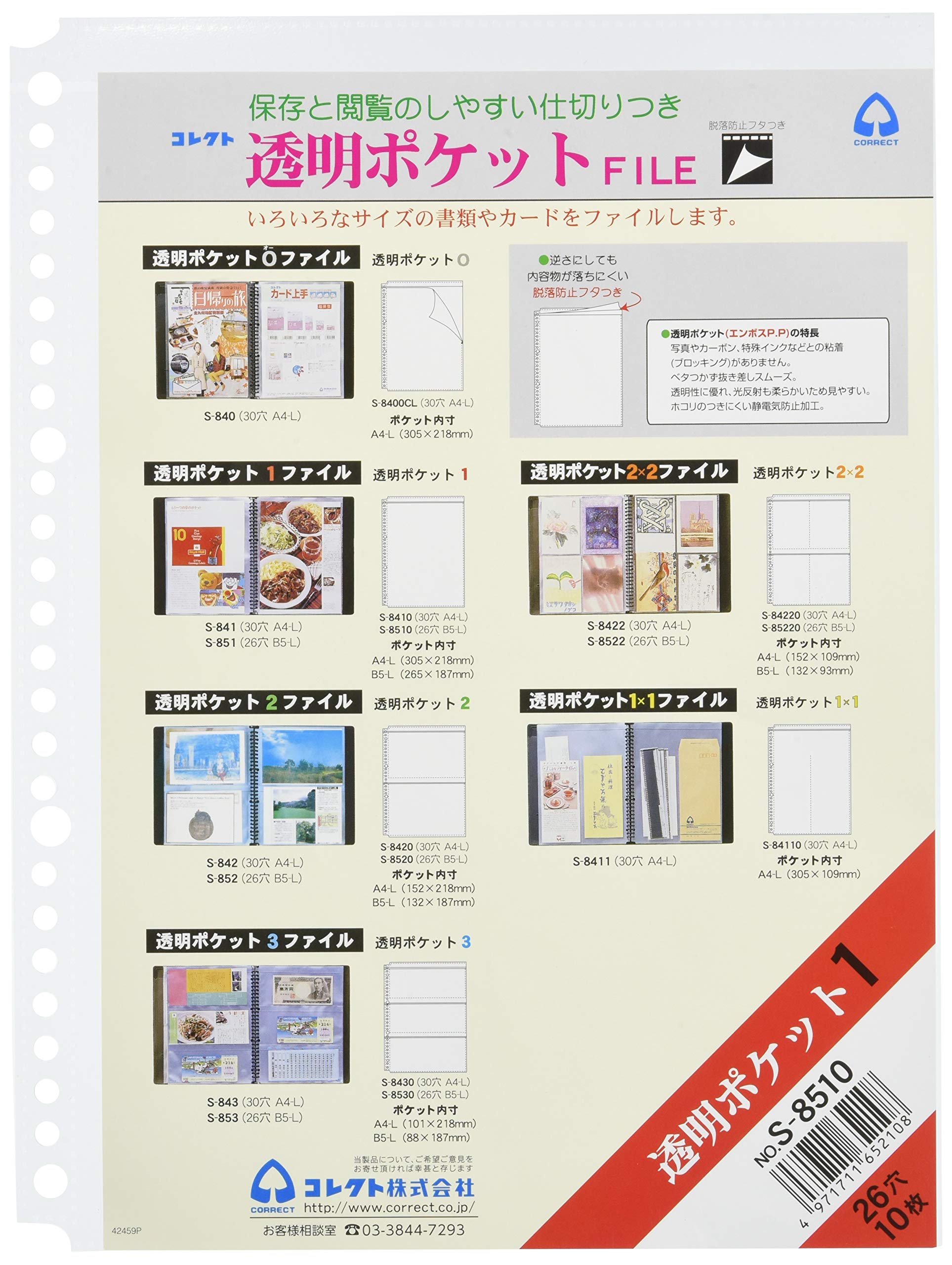 コレクト ファイル 透明ポケット1 B5-L 26穴 S-8510