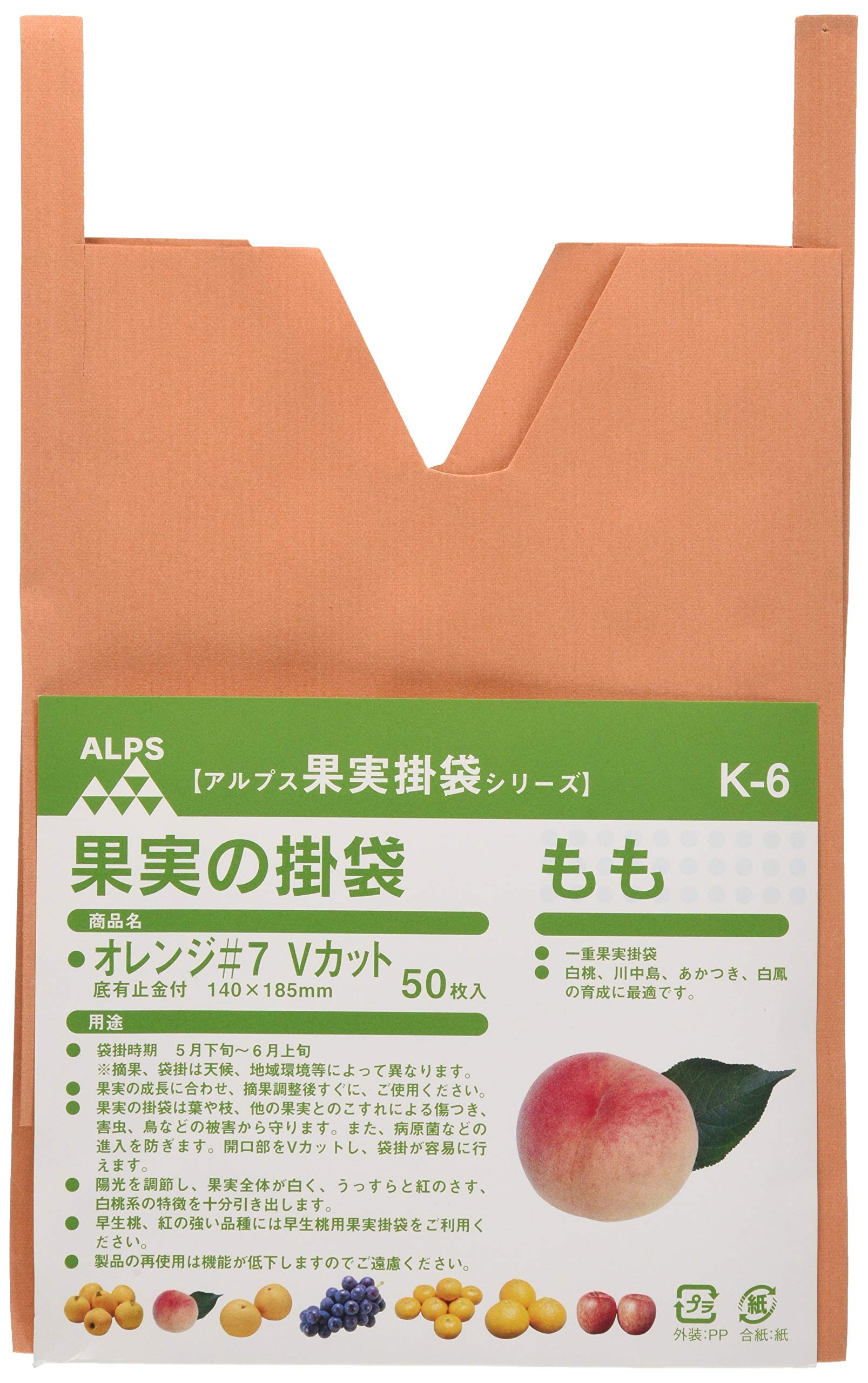 商品名:一色本店 果実袋もも オレンジ#7 Vカット 遮光度79.1% K-6 50枚入り