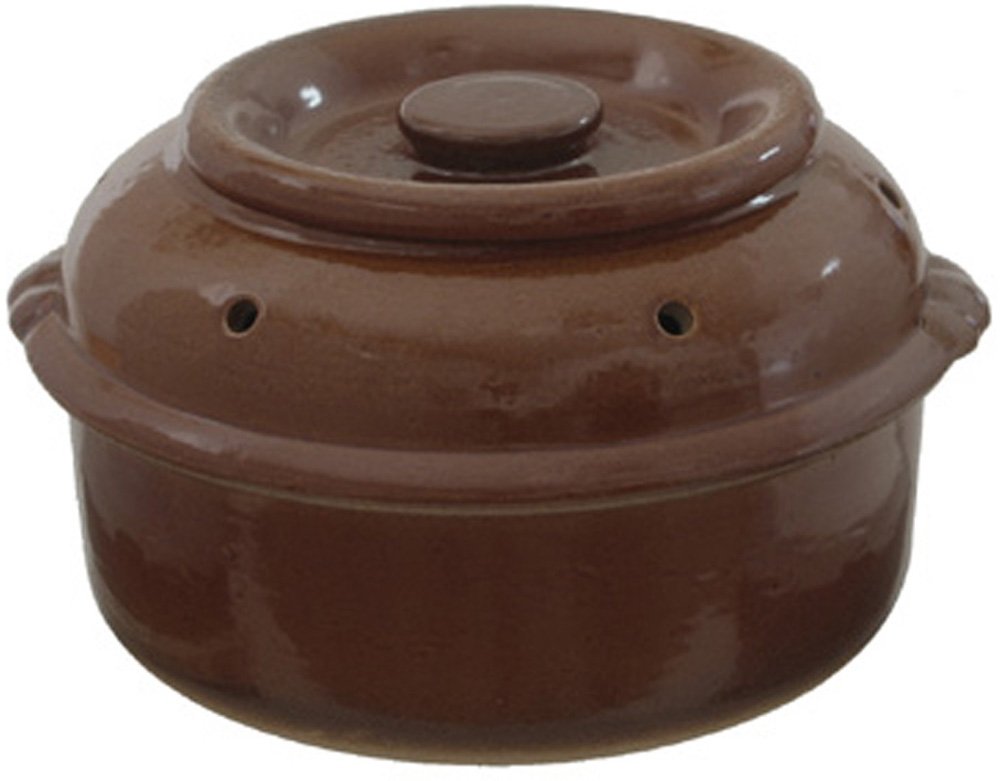 この焼きいも器は、家庭で美味しくあつあつほかほかと楽しめる、リビングブランドの人気商品です。サイズは約幅24.5cm×奥行き24cm×高さ13cm、重量は約1800g、容量は約3000ccで、耐熱陶器で作られています。オーブンやコンロに直火で使えるため、調理の幅が広がります。ブラウンのペイントフィニッシュで、中国製です。