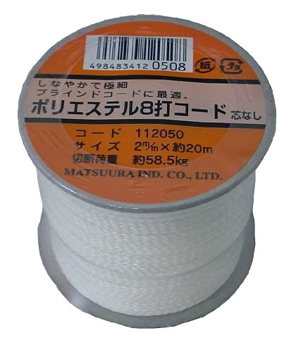 商品名:まつうら工業 ポリエステル製 8打コード 芯なし 太さ約2mm 長さ20m 白 ボビン巻