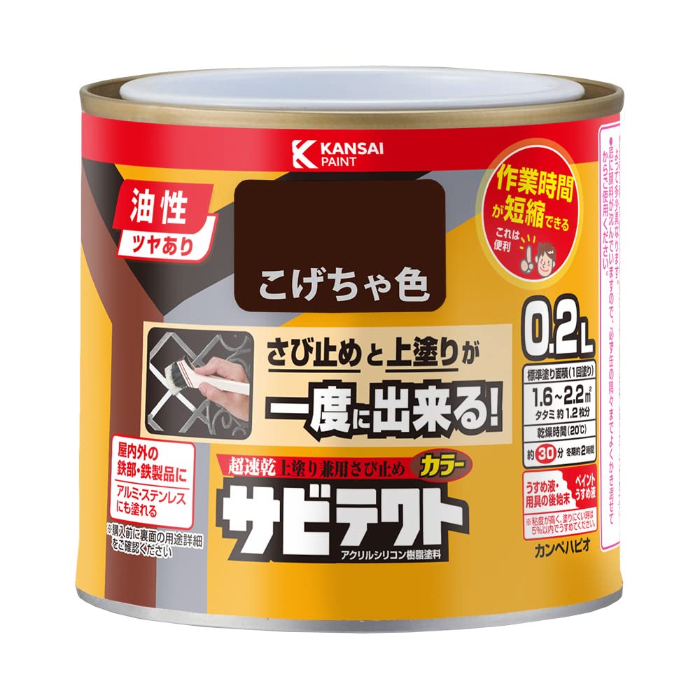 商品名:カンペハピオ(Kanpe Hapio) ペンキ 塗料 油性 つやあり さび止め 速乾性 さびの上から塗れる塗料 高耐久 アクリルシリコン樹脂 サビテクト こげちゃ色 0.2L 日本製 00097640161002
