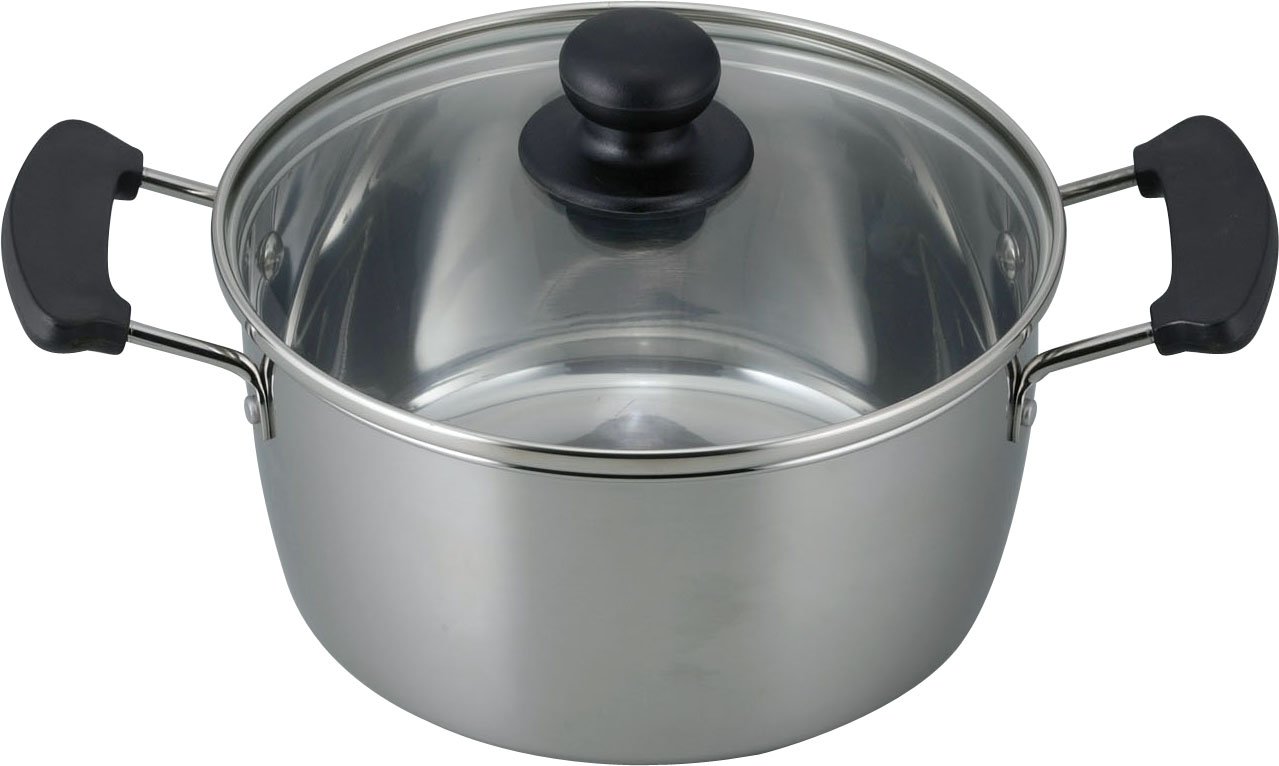 和平フレイズ 両手鍋 煮物 カレー シチュー レシード 20cm IH対応 ガラス蓋付 ステンレス製 RR-6889