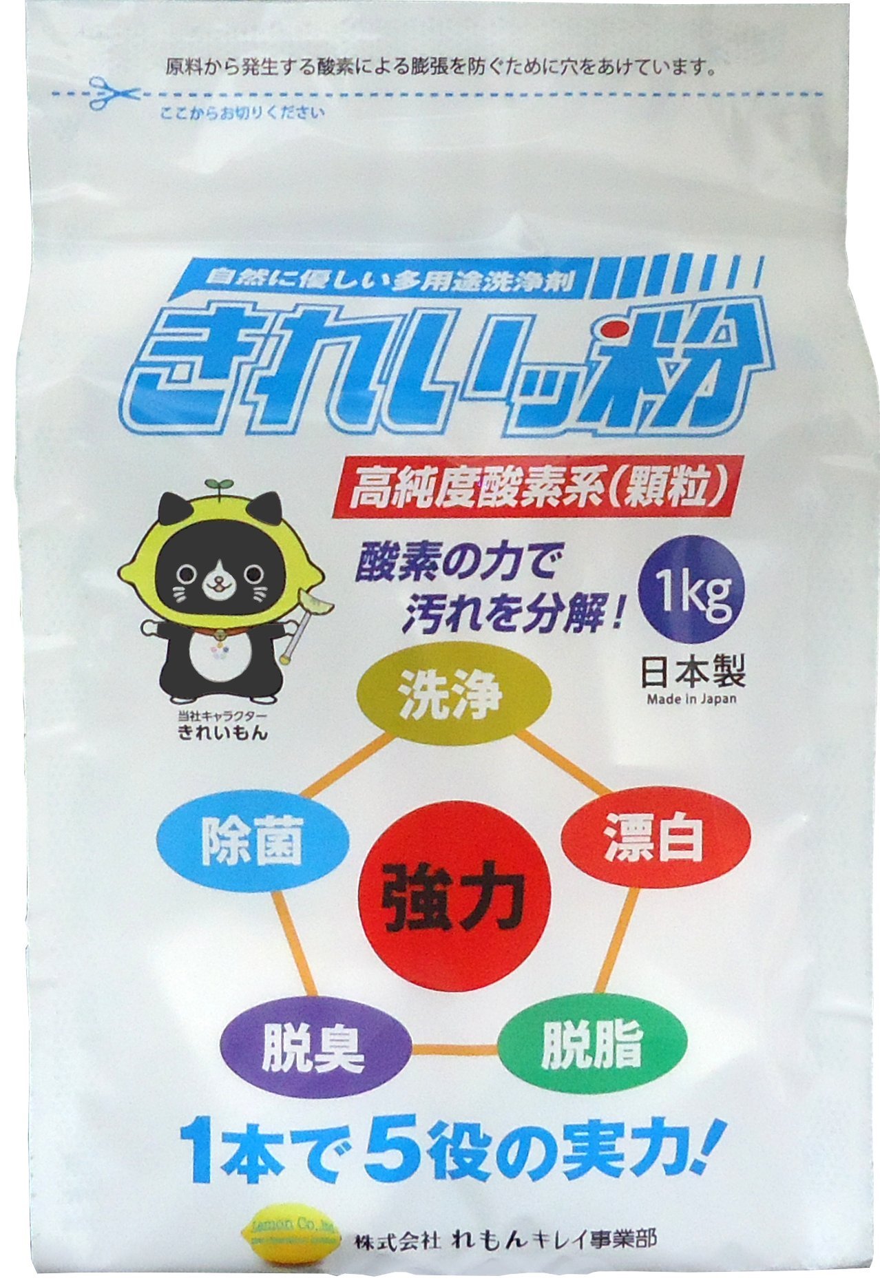 「きれいッ粉 詰替え用袋タイプ 1kg」は、1本で漂白・洗浄・脱脂・脱臭・除菌の5つのはたらきをする、自然にやさしい多機能洗浄洗剤(詰替え用)です。酵素のチカラで汚れを分解します。高純度酸素系(顆粒)。※計量スプーンは入っていません。