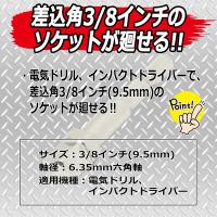 特徴:電気ドリル・インパクトドライバーで、差込角3/8インチ(9.5mm)のソケットを使用するためのアダプター