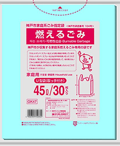 「日本サニパック神戸市 可燃 とって付き 45L 青半透明 30枚 」は、神戸市指定袋です。