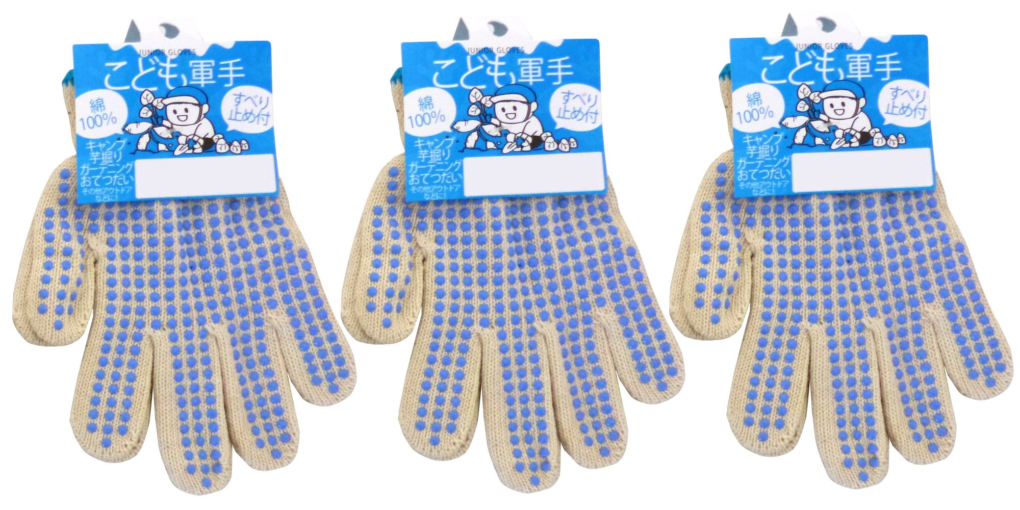 有限会社PAX-ASIAN パックスエイジアン こども軍手 すべり止め 2S(5歳~6歳目安) 青 3双組