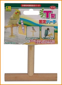 [三晃商会]小鳥用木製固定式パーチ!T型固定パーチ(B38)