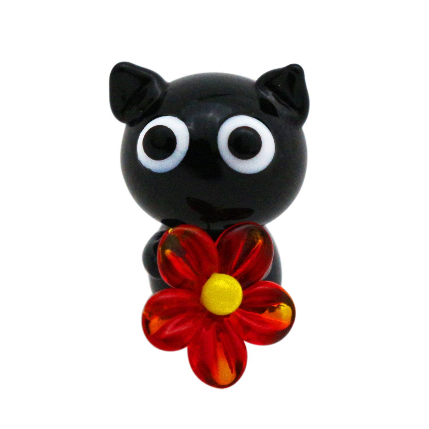 商品名:フォーカート かわいい 猫 手作り ガラス細工 お花どうぞ クロネコ