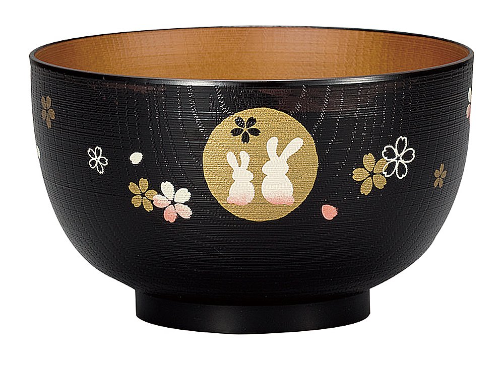 宮本産業 汁椀 黒内木目 月うさぎ どんぶり 4512951115178