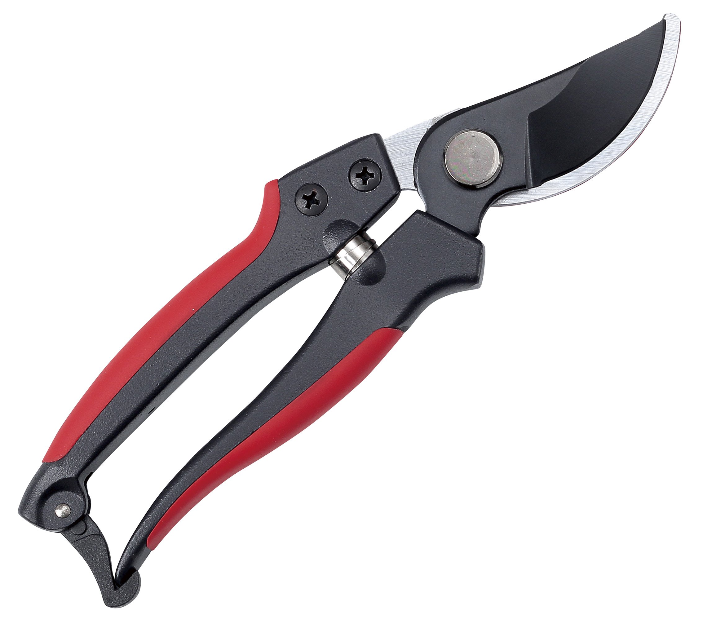 掴んだ枝を逃がさないエッジ付き。少しの力で楽々切断の薄刃仕様で、軽量アルミ合金ハンドル。