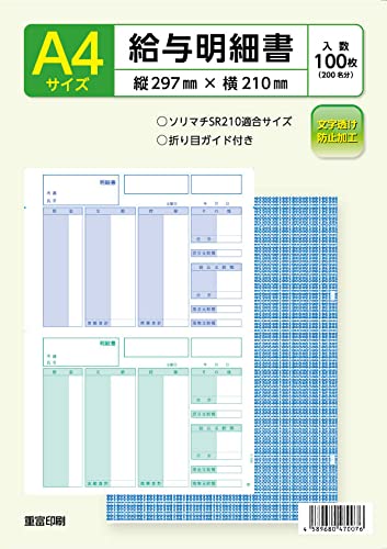 商品名:ソリマチ給与明細書 SR2101対応用紙 100枚入り