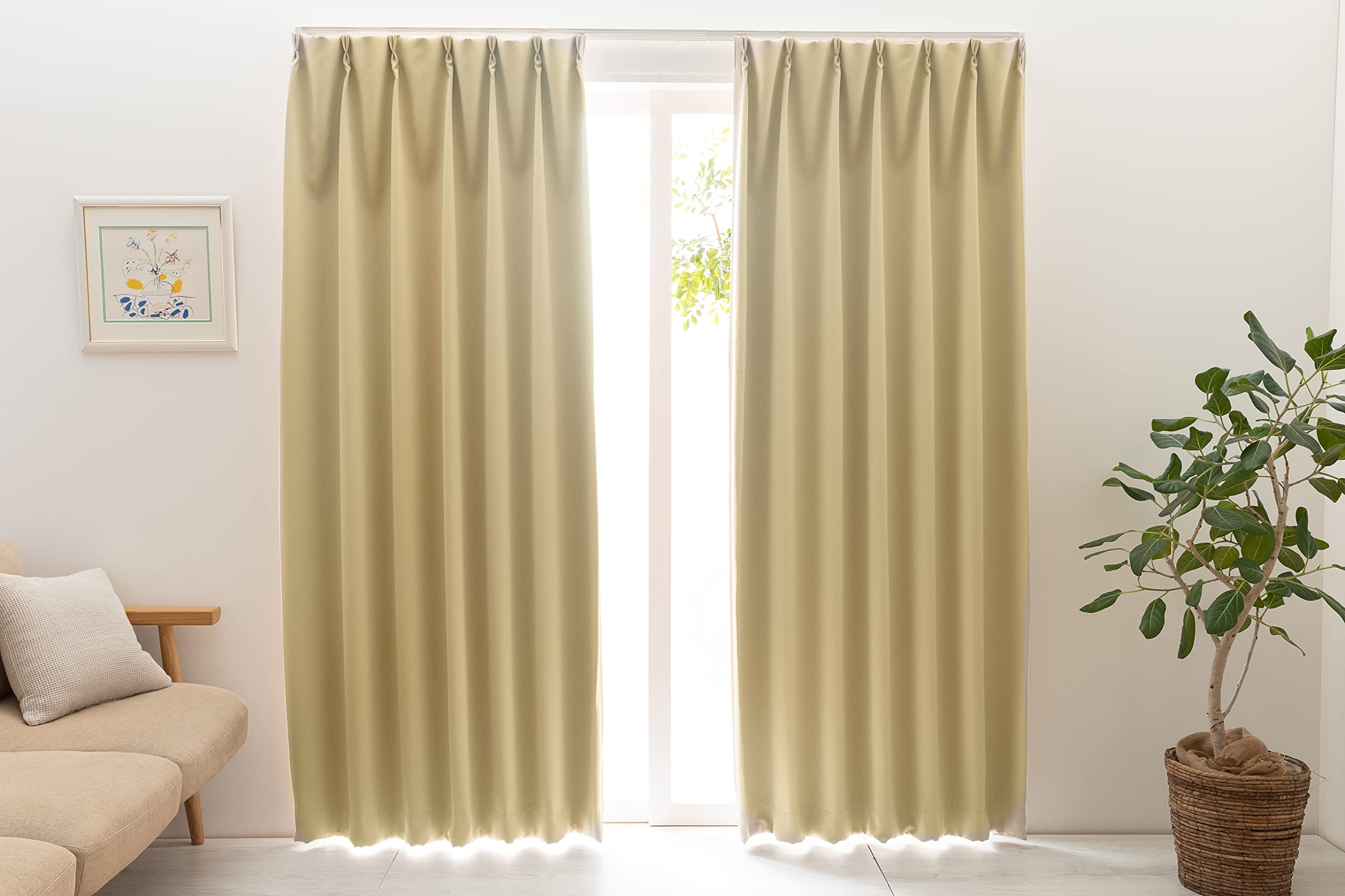 商品名:ユニベール 1級遮光 防炎 防炎ラベル付き 節電 省エネ 断熱 保温 日本製 無地 寝室 リビング カーテン 幅100cm×丈135cm 2枚 ベルーイ ベージュ