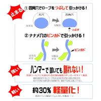 2穴タイプなので誰にでもわかりやすくセット、調節が簡単。 特殊穴形状でロープが滑らず止まります。