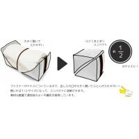 出し入れ口がナナメに開閉することで、かさばる羽毛ふとんをコンパクトに収納できます。素材には軽量で通気性のよい厚手の不織布を使用しています。