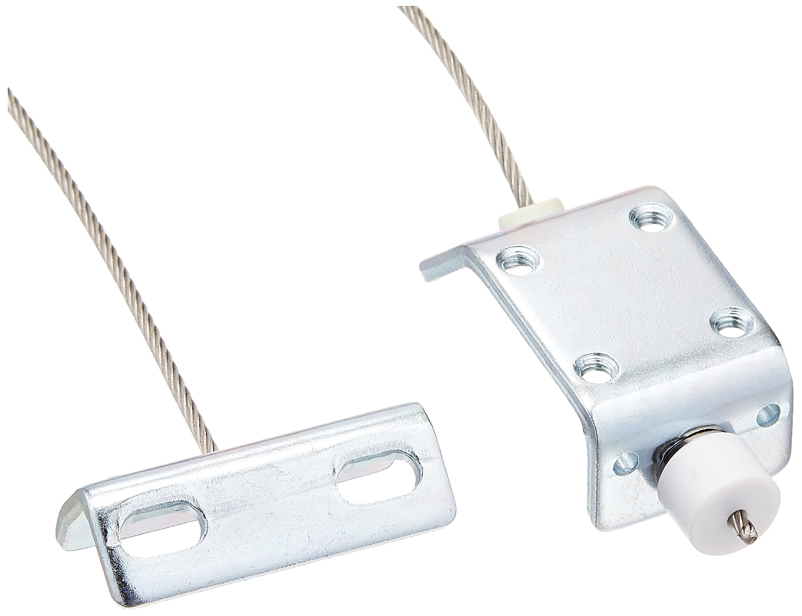 注意事項: ・本製品は扉のストッパー金具です。あおり止めとして使用しないで下さい。(強風時にワイヤーが破断する恐れがあります。) ・閉扉時は必ず扉のロックをお願いします。・通常枠取付時には、枠側にM4タップ加工(2箇所)、扉側に丸穴加工(2箇所)が必要です。・サッシ枠取付時には、枠側にM4丸穴加工(2箇所)、扉側に丸穴加工(2箇所)が必要です。