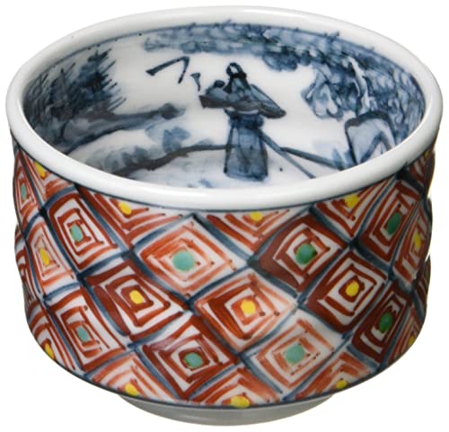 商品名:京焼 清水焼 ぐい呑み おちょこ 盃 (木箱入) 赤絵格子 六齋窯 還暦祝い 敬老の日 プレゼント GRE384