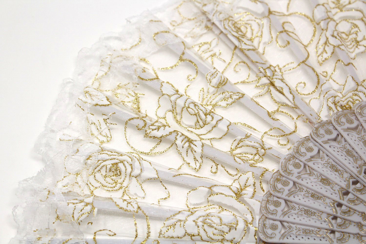 弁天屋本舗 全6色 練習用 ラメ入り 薔薇 レース 扇子 アバニコ バレエ ダンス リトモス キトリ スペイン 踊り レッスン 舞踊 (白)