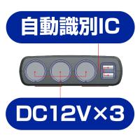 特長:USBポートが2口、DC12Vソケットが3口。コードの長さは約1m。