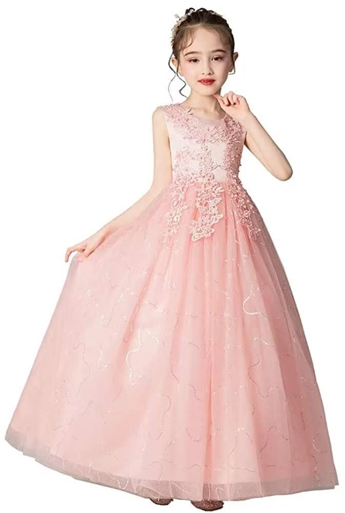 商品名:[Kayiyasu] 子供ドレス ピアノ 発表会 女の子 フォーマル ロングドレス 結婚式 卒業式 パーティー 刺繍 入園式 120-170 3−13歳に適合(140 ピンク)