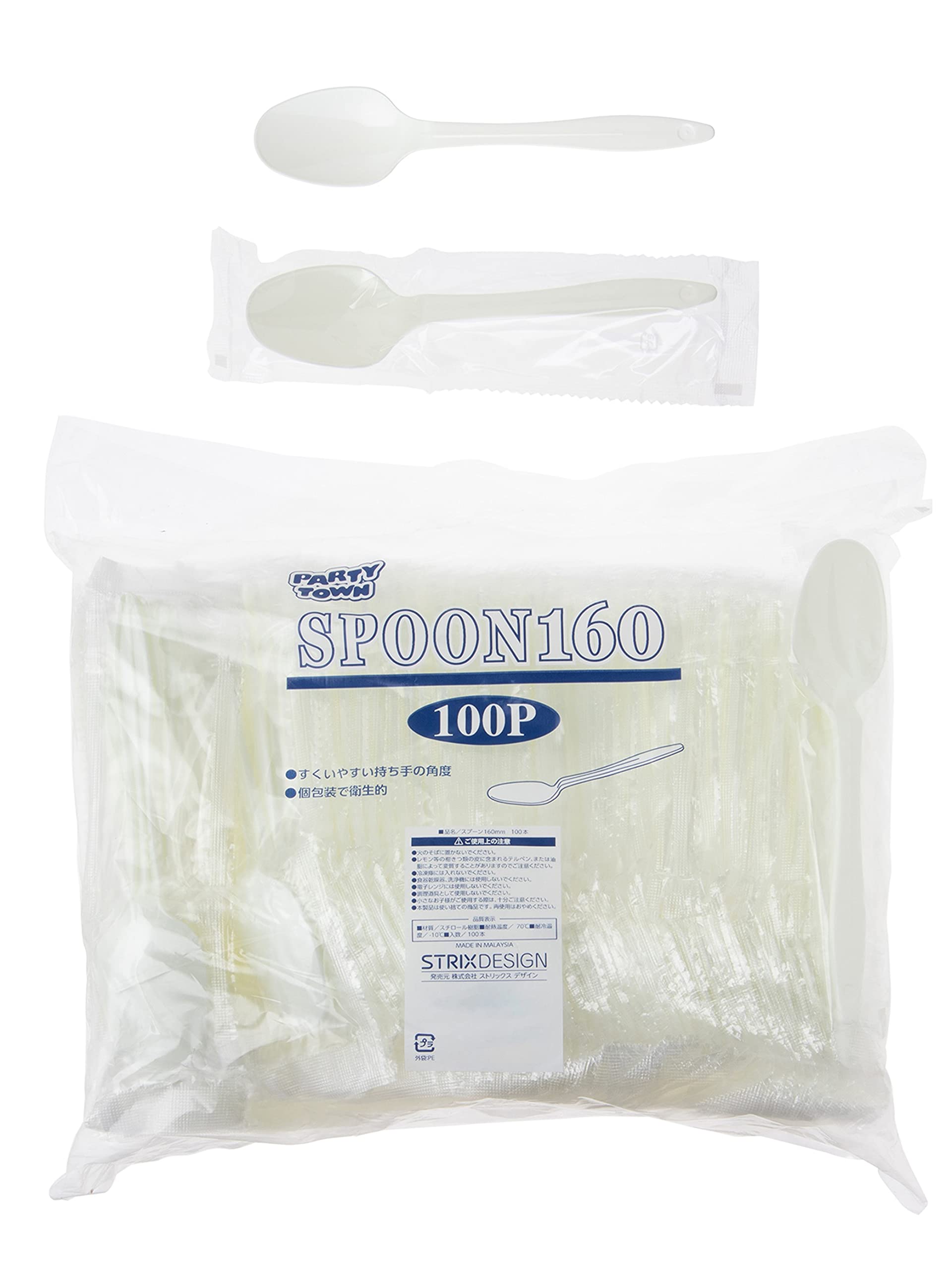 商品名:ストリックスデザイン 使い捨て スプーン 個包装 業務用 100本 16cm 白 すくいやすく口当たりもなめらか プラスチック SG-052