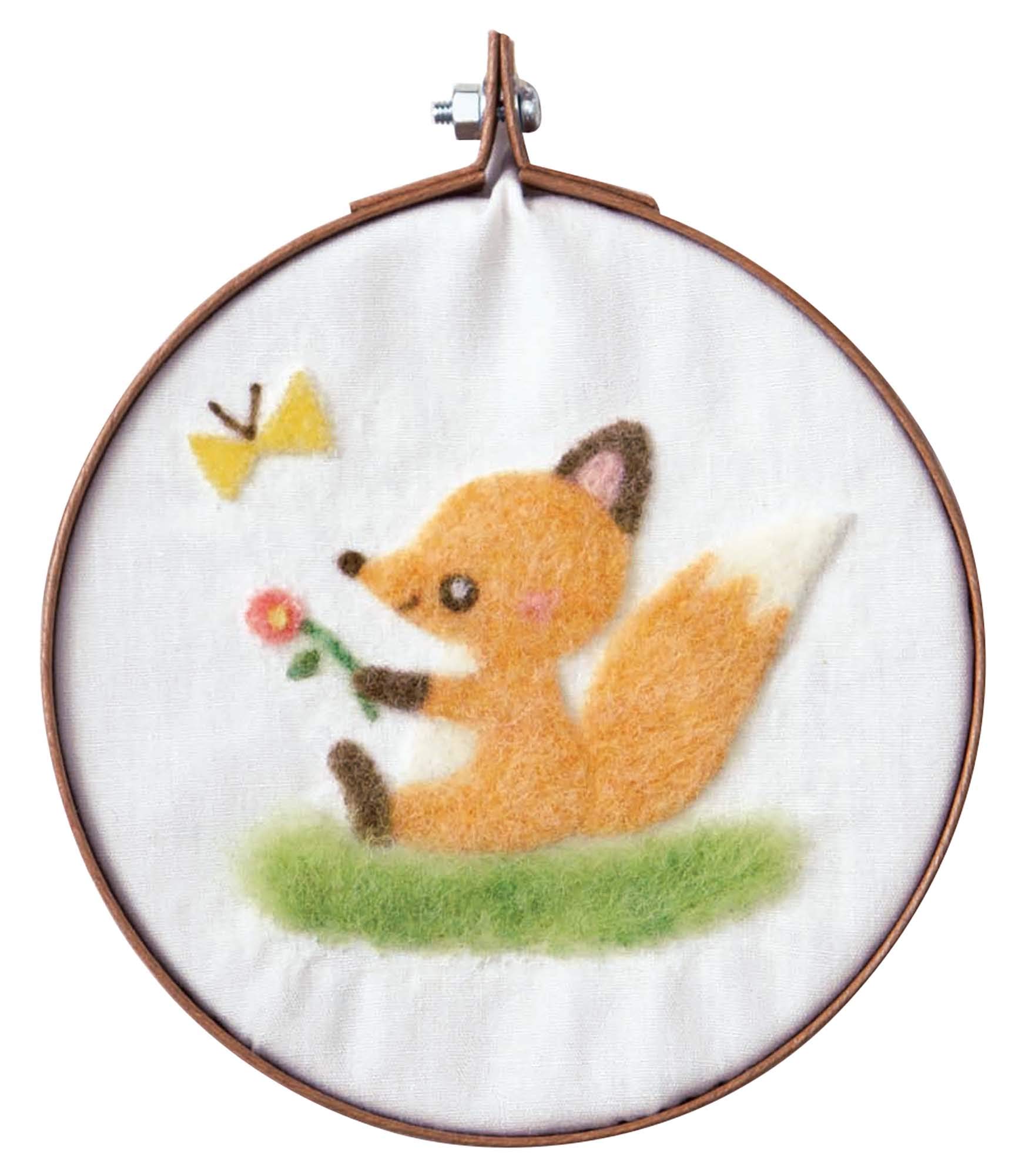ハマナカ 羊毛キット 手作りフレームに飾る羊毛のふんわり刺しゅう きつねとちょうちょ H441-567