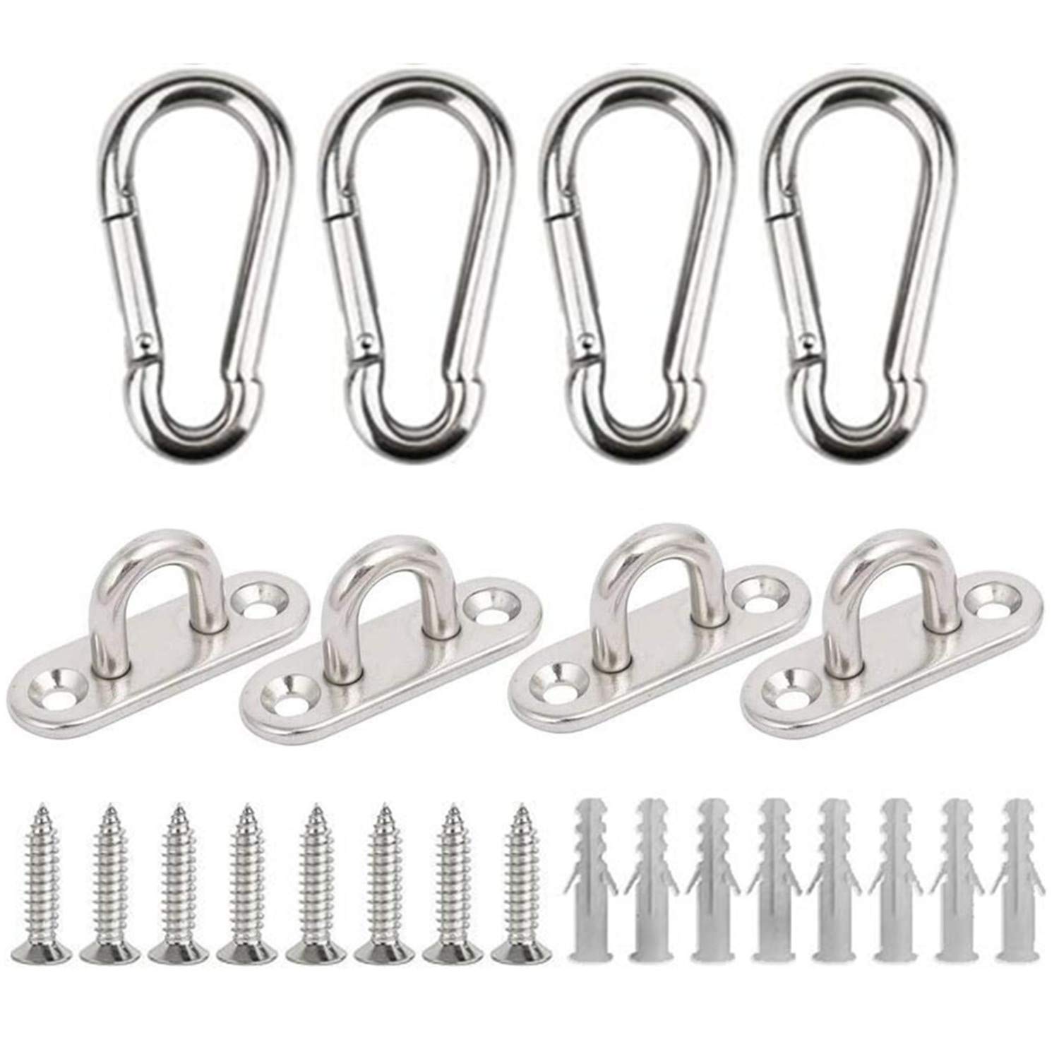 【パッケージ内容】4個のM5ステンレス鋼天井フック+ 4個のカラビナ+8個のネジが付い+8個膨張チューブ(色はランダム)。ネジとアンカーはすべてパックに含まれており、付属品を探す必要はありません。