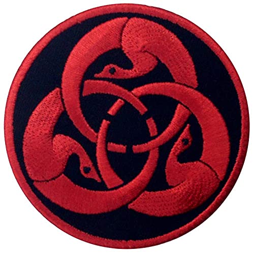 はがくれ刺繍入りアイロン貼り付け/縫い付けワッペン, 赤