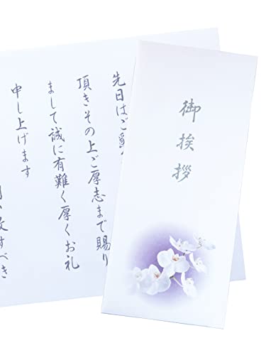 香典返しの返礼品に添えてご使用いただく巻紙挨拶状。挨拶状文面用紙は奉書紙(和紙)に胡蝶蘭の絵柄入り。 胡蝶蘭の花言葉は「清純な愛」。感謝の想いを伝える挨拶状。 文章印刷済みの商品になります。お名前などの追加文字入れ印刷はできません。 印刷機を使用した薄墨印刷をしております。封筒表面には御挨拶の文字が入っております。 挨拶状があと少し必要、数枚だけ必要、などの場合におすすめです。 文章をご確認の上(宗教・宗派で問題ないか)ご使用ください。