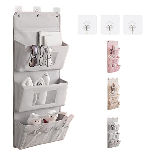 商品名:ウォールポケット 壁掛け 3段 大容量 吊り下げ収納ポケット 粘着フック3枚付き 折りたたみ省スペース ドア壁掛け 寮収納袋 洗面所 雑貨入れ 小物整理 (3段グレー)