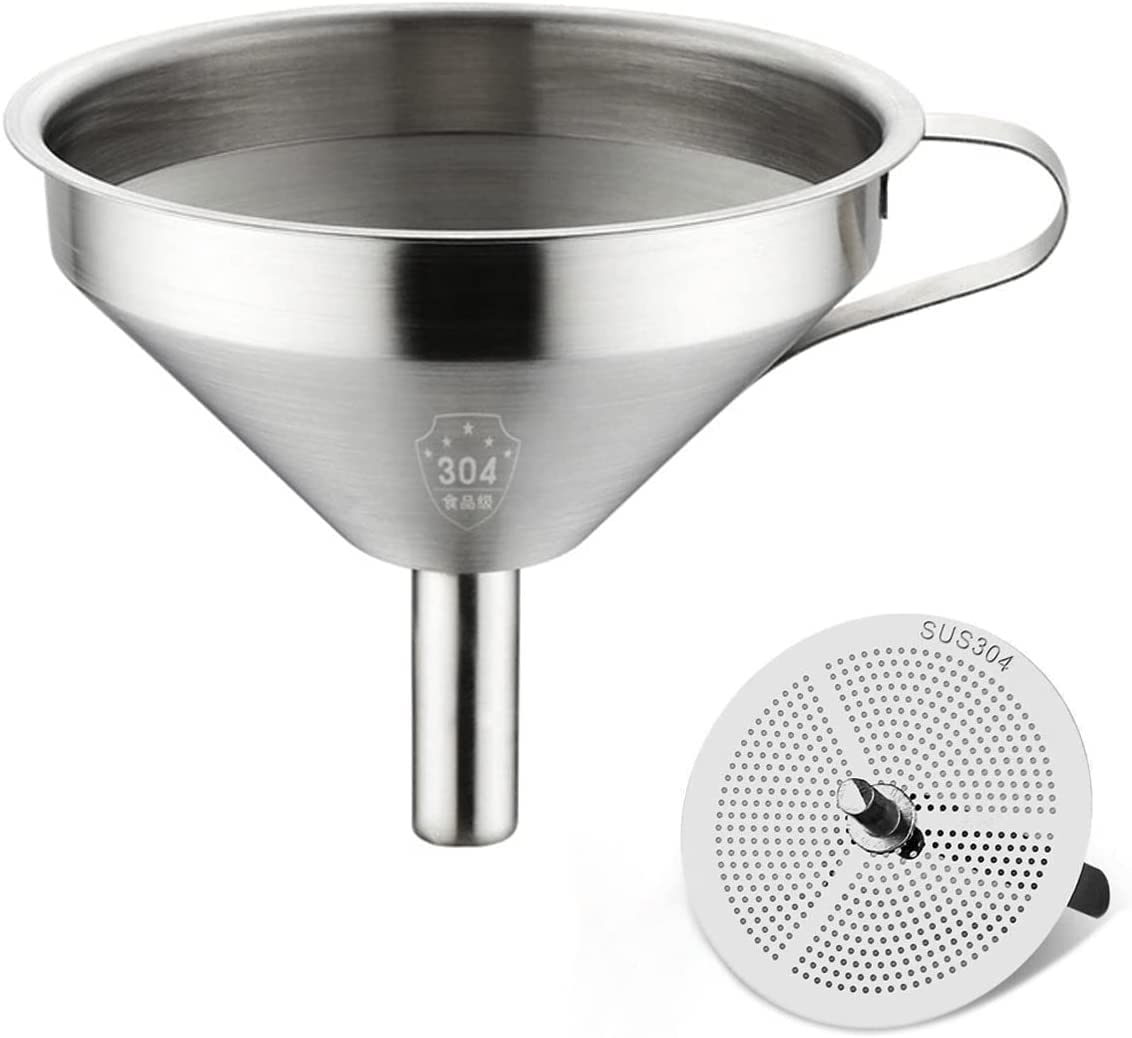 ★【便利】漏斗のハンドルはしっかりと溶接されて、厚くて丈夫です、落ちるのが簡単ではなく、快適で使いやすいです。 ハンドル設計はスペースを節約するために漏斗を掛ける。