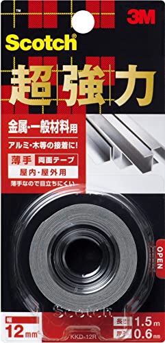 3M スコッチ 超強力両面テープ 金属 一般材料用 12mm×1.5m KKD-12R グレー