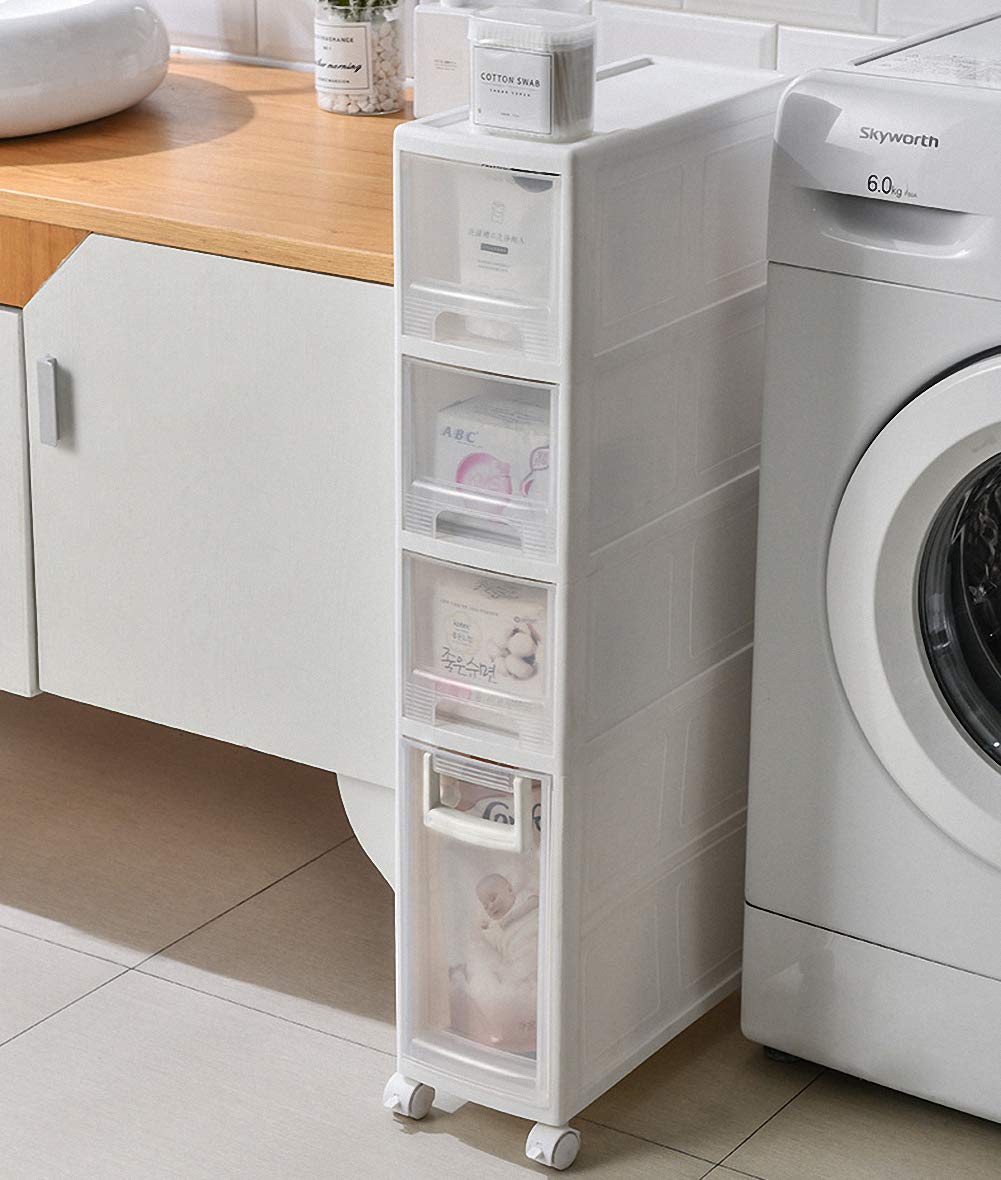 PFLife 隙間収納 16cm 完成品 隙間収納 引き出し スリムチェスト 収納ボックス 引き出し 洗面所 収納 脱衣所 収納 キッチンチェスト 4