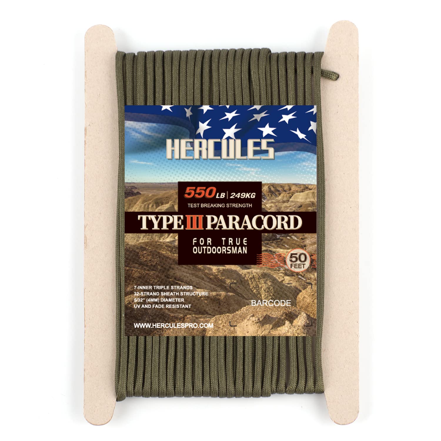 商品名:HERCULES パラコード ガイロープ キャンプロープ テントロープ アウトドア 用 耐荷重250kg 7芯 アーミーグリーン 15m