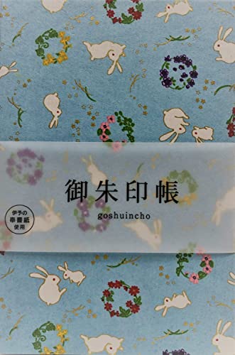 御朱印帳 御城印 集印帳 御朱印 大判 蛇腹 納経帳 (ウサギと花 水色)