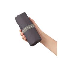 ゴムがついており、未使用時は折りたたんでコンパクトに持ち運ぶことができます。口元はファスナー仕様となっているので、中身が飛び出る心配がありません。