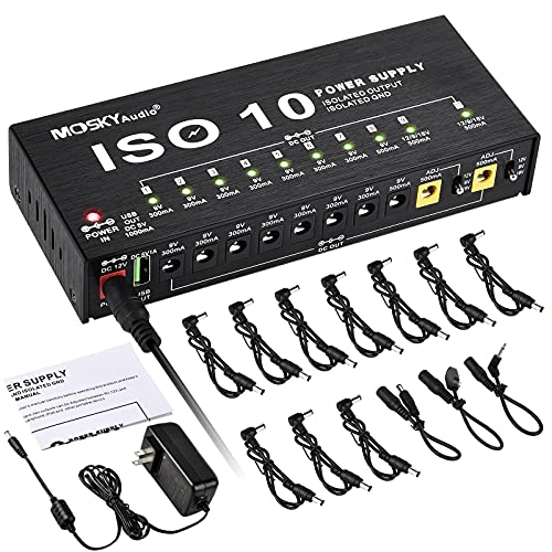 電源はギターエフェクトペダル用に設計されています。 10個の分離出力:9V 300MAポートX 7、9V 500MAポートX 1、9/12/18V 500MA調整可能な出力ポートX 2.調整可能なDC出力は、より便利なパフォーマンスと拡張使用を提供します。