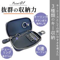 [YuHaru] キーケース メンズ レディース 本革 カードキーケース スマートキーケース 車キーケース 6連 2つ内側ポケット カード入れ カラビ