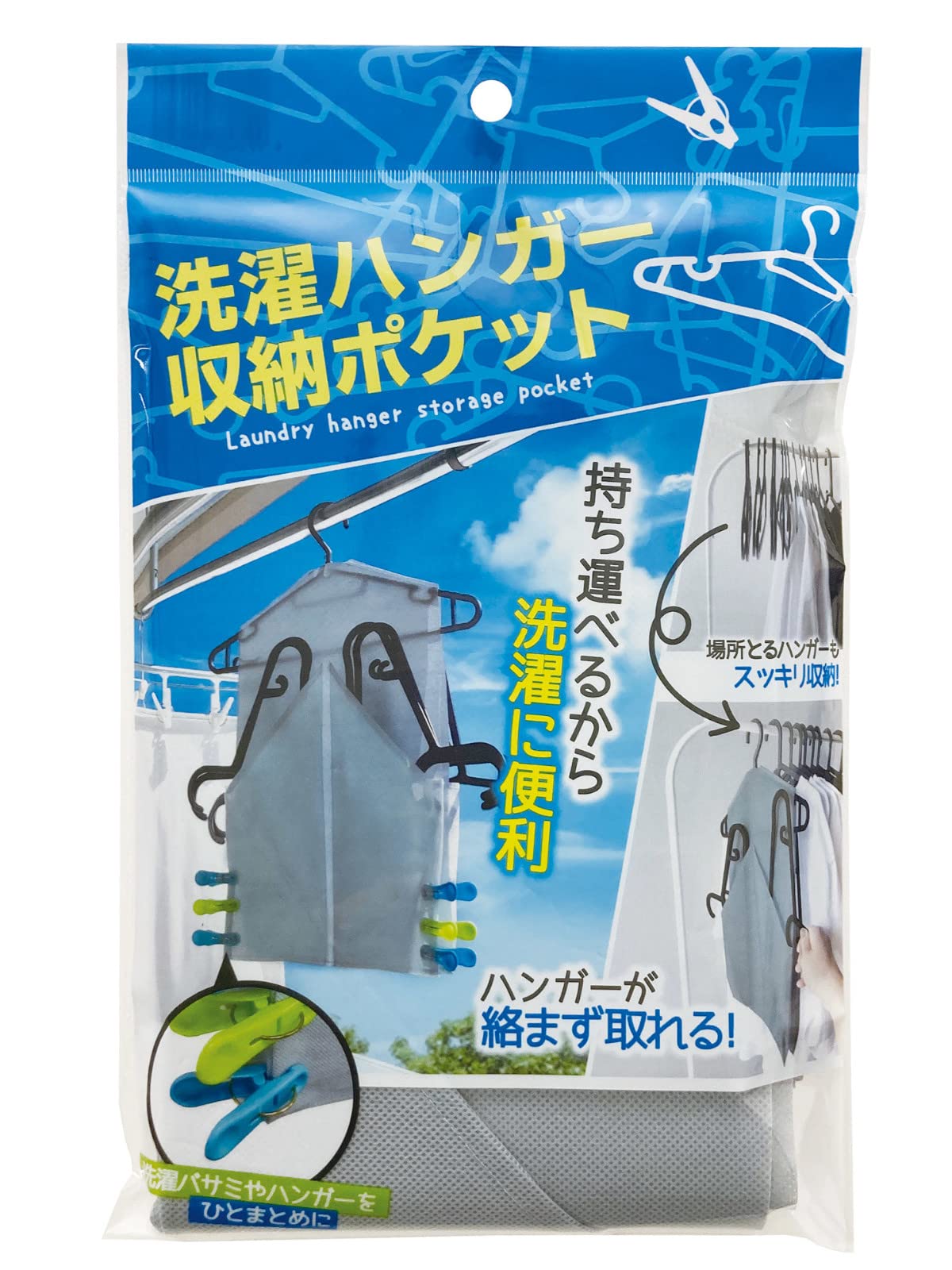 ケミカルジャパン 洗濯 ハンガー収納ポケット 洗濯ハンガーをひとまとめに! 4つのポケット グレー
