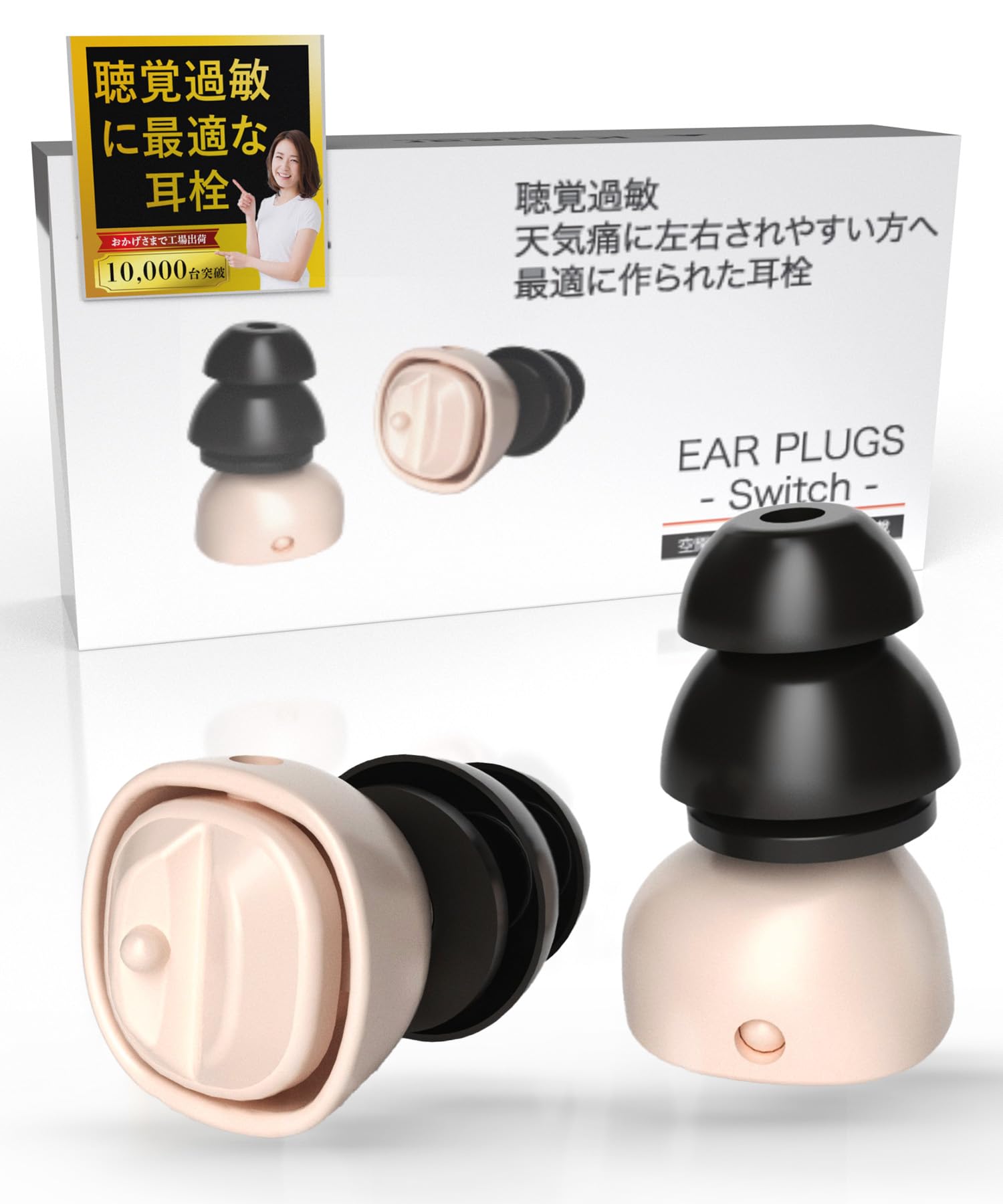 ?【天気に左右されやすい方へ】完全遮断するスポンジフィルター耳栓と違い、空気を流すため外圧と内圧の調整がしやすい設計を採用。またスイッチの操作により、付けた状態で内圧を開放も出来るので好みの環境を整えやすくなります。