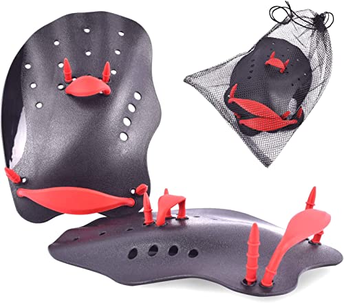 着脱が簡単:水泳用パドルは着脱が簡単で、調節可能なストラップが付いているので、水に落ちないようになっています。水泳の初心者が水泳のスキルを向上させ、腕の強度を高めるのに適しています。