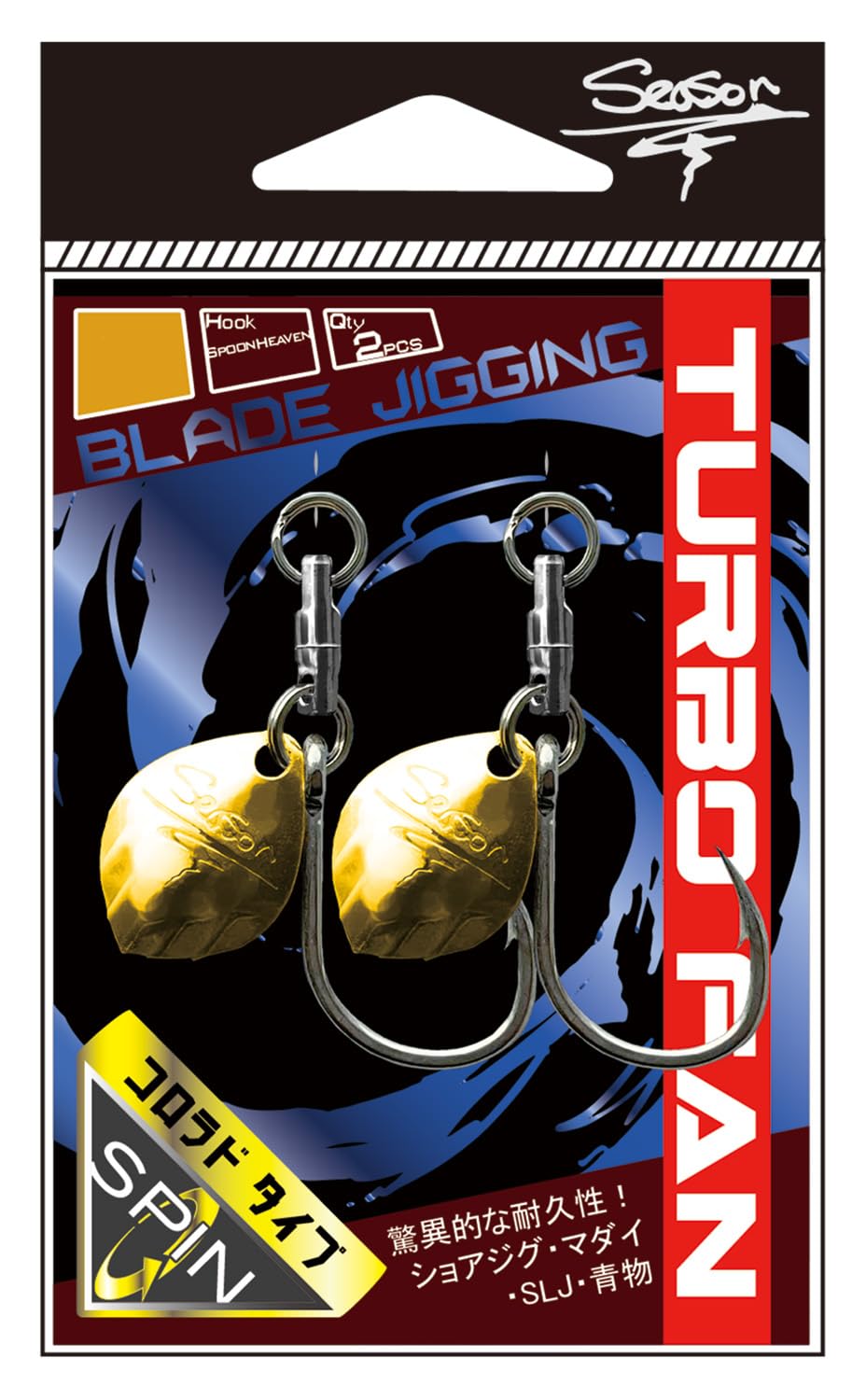 タイプ:【ターボファン】……ショアジグ・SLJ・マダイ・青物対応ブレードフック!!専用のスティックスイベル採用により従来のボールスイベルに比べ耐久性が高く、サイズの大きなスプリットリングも簡易に装着可能。