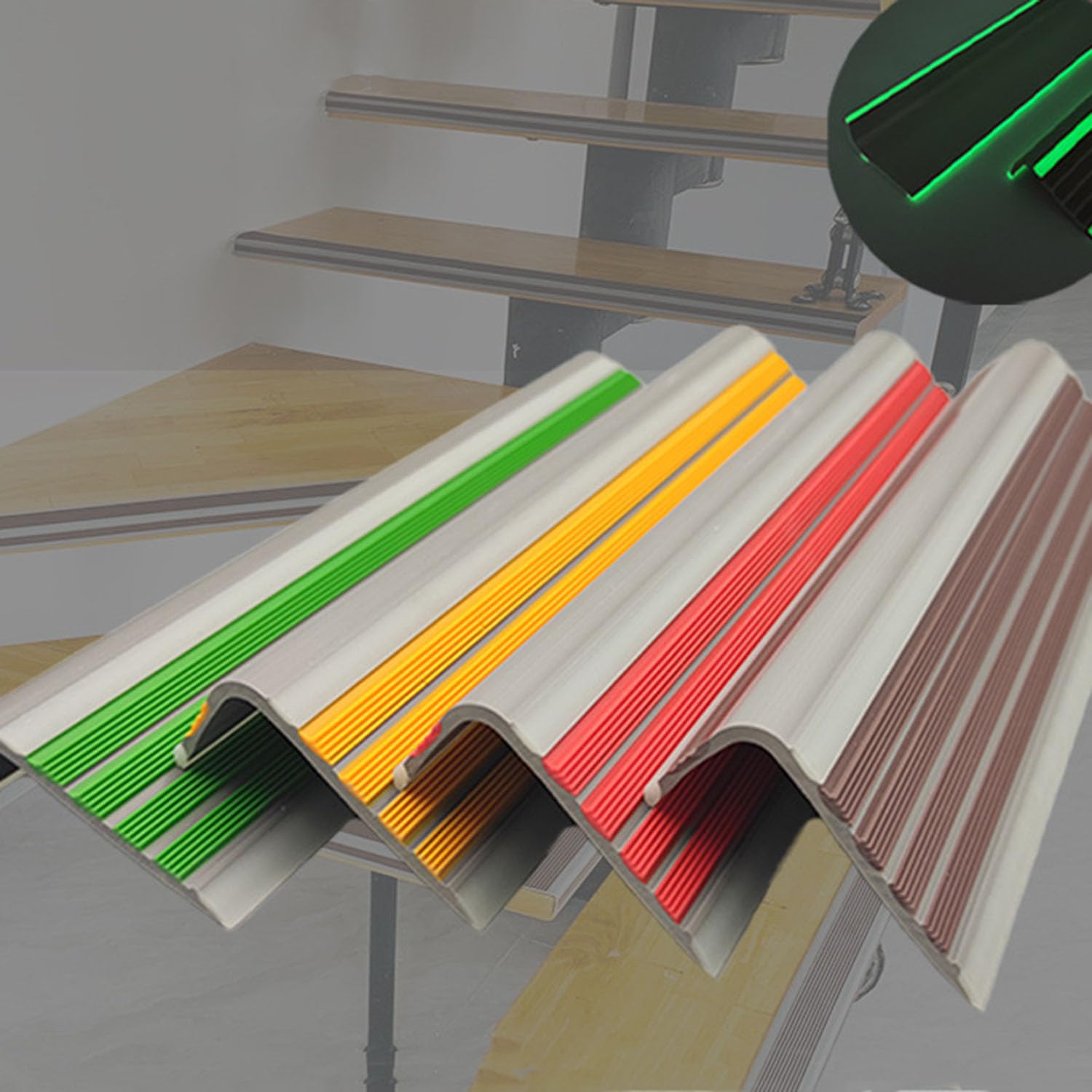 【蛍光 夜に光る】蛍光素材を採用しており、夜に階段を上り下りして踏み外すことがないように夜に発光します。