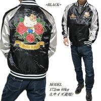 スカジャン ハローキティ/HELLO KITTY/サンリオ 服 刺繍 メンズ/レディース ユニセックス スカル/ドクロ キャラクター