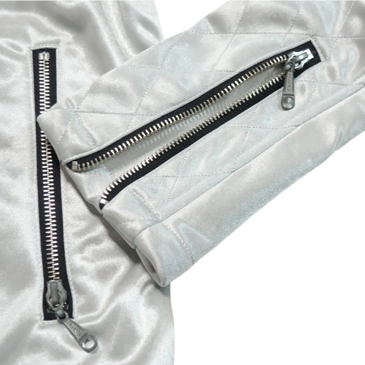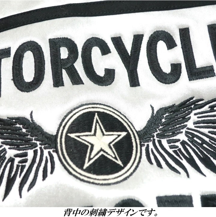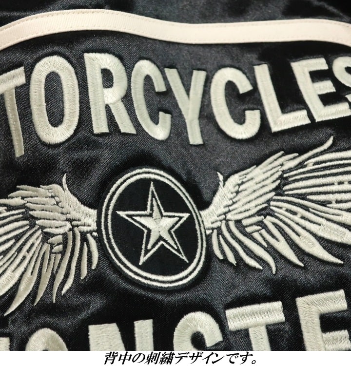 1,さらに:表サテン生地のツヤ感で一瞬で主役になれる。 2,しかも:裏側はフリース起毛だから冬の外出も余裕。 3,さらに:ライダース型で男らしさをプラス。 4,しかも:左胸のワッペンロゴがアクセいらずの存在感。 5,さらに:背中のフライングスターが“語れる背中”を演出。 6,しかも:シルバーとブラック、 どっちも珍しく周りと被らない。 7,さらに:着るだけで「センスいい!」と 言われる確率が爆上がり。