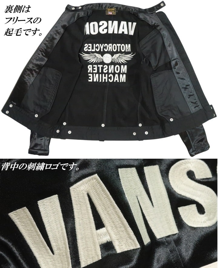 | | 特徴 | ラッピング無料 送料無料 返品OK 返金保証 返品送料無料 VANSON 刺繍 ライダースジャケット 表サテン/裏フリース
