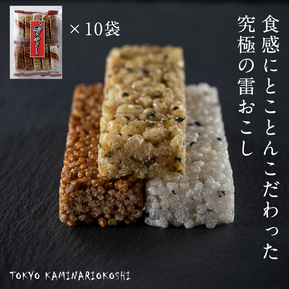 東京雷おこし 200本(20本入(ごま4本 アオサ8本 黒糖8本)×10袋) おこし 黒胡麻 アオサ 沖縄県産黒糖