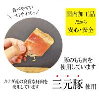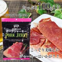 | 商品案内 | 赤身と脂身のバランスの整った三元豚のもも肉を使用し、オリジナルのたれで漬け込み上質な味わいに仕上げた逸品。 ややこってりめのポークジャーキーはビールとの相性が抜群です。食べやすい一口サイズでカットされております。おつまみに、おやつにどうぞ。 |