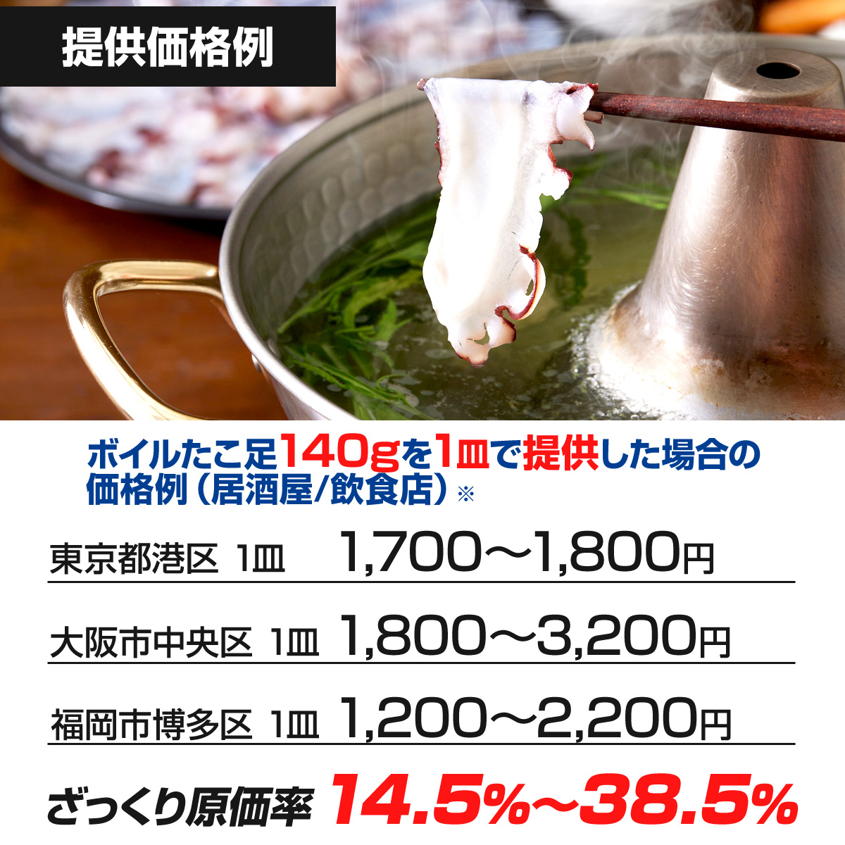 | 水産卸を行っている進風水産だからこそ、業界最安?!お値段が実現しました!!日々、北海道内・外の飲食店様に新鮮な水産品を卸しているため、まとまった仕入れをすることが可能です。そのため他社よりも比較的お安く提供することができるのです!一度、水産品の本場北海道のミズダコを食べてみて!! |