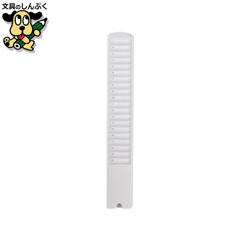 壁掛式で、スッキリとカードを収納できるタイムカードラック。●外形寸法(幅)[mm]:101●外形寸法(奥)[mm]:32●外形寸法(高)[mm]:683●収納数:20枚●種別:タイムカード用●材質:ポリスチレン